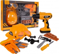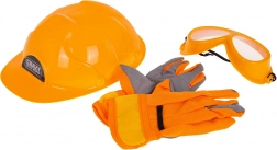 Plastikowy kask, gogle ochronne i rękawice wspierają bezpieczne nawyki podczas zabawy na „placu budowy” i dodają małym majsterkowiczom pewnego, profesjonalnego wyglądu.