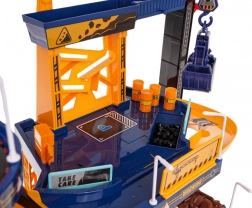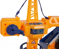 - Bogate wyposażenie z ruchomymi elementami: ręcznie obracane ramię dźwigu, niebieska korbka do przesuwania haka w lewo i w prawo