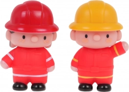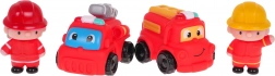 Kolorowy zestaw dla małych strażaków zawiera 2 figurki strażaków oraz 2 urocze wozy strażackie z grzechotkami. Idealny do rozwijania dziecięcej wyobraźni i zabaw w odgrywanie ról, wykonany w żywych kolorach i odpowiedni dla dzieci od 3 lat. Figurki mają obracane główki, a jedno autko i figurka z żółtym hełmem kryją w sobie grzechotkę dla jeszcze ciekawszej zabawy.