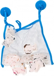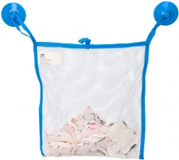 Zestaw uzupełnia pojemna siateczka (23 × 27 cm) z dwoma przyssawkami do mocowania na gładkich powierzchniach. Siateczka ułatwia organizację zabawek, szybkie odciekanie wody i higieniczne suszenie, dzięki czemu łazienka pozostaje uporządkowana.
