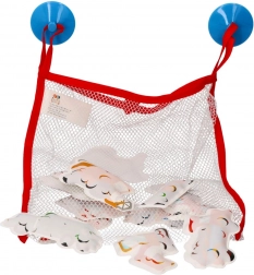 W zestawie znajduje się przewiewny woreczek z siatki 23 × 27 cm do wygodnego przechowywania naklejek i higienicznego wysychania po kąpieli.