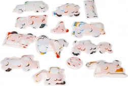 Naklejki są miękkie, przyjemne w dotyku i dobrze trzymają się gładkich mokrych powierzchni (wanienka, kafelki). Po kąpieli wystarczy umieścić je w przewiewnym woreczku o wymiarach 23 × 27 cm, który ułatwia odprowadzanie wody i higieniczne suszenie.