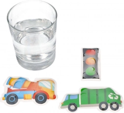 Zamień każdą kąpiel w przygodę dzięki łazienkowym naklejkom z motywami ciężarówek, które po zamoczeniu natychmiast zmieniają kolor. Dzieci pokochają obserwowanie, jak obrazki ożywają, jednocześnie ćwicząc małą motorykę i odkrywając świat pojazdów.
