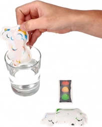 Naklejki przy kontakcie z wodą zmieniają kolor – dzieci są zafascynowane natychmiastowym efektem wizualnym i chętnie wracają do nich podczas kąpieli.