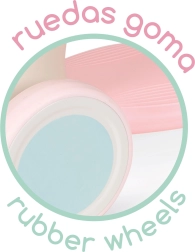 Gumowane koła zapewniają cichy bieg i pewny kontakt z podłożem. Stabilna, czterokołowa konstrukcja wspiera równowagę początkujących użytkowników.