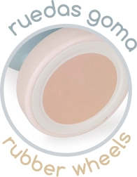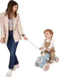 Przemyślane detale zwiększają wygodę i bezpieczeństwo: obracana kierownica z ochroną przed przytrzaśnięciem palców, miękkie, gumowane chwyty oraz ciche koła dla płynnej jazdy. Podnóżek odciąża zmęczone nóżki, a pasek do ciągnięcia (100 cm) pozwala rodzicom wygodnie prowadzić dziecko. Niska waga ułatwia przenoszenie i przechowywanie.