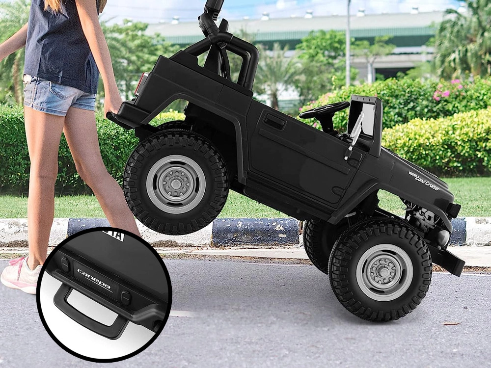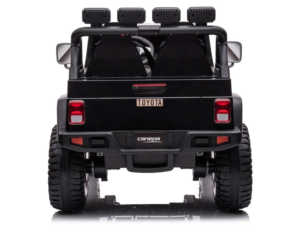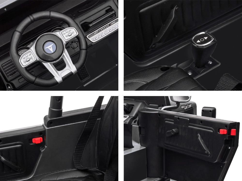 Licencjonowany pojazd dziecięcy TOYOTA LAND CRUISER dla dwojga dzieci oferuje mocny napęd 4x4, akumulator 24V 7Ah oraz 4 silniki 100W. Miękkie koła EVA, oświetlenie LED, skórzane dwuosobowe siedzisko i rodzicielski pilot 2,4 GHz zapewniają bezpieczną i komfortową jazdę także w terenie, przy udźwigu do 59 kg.