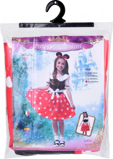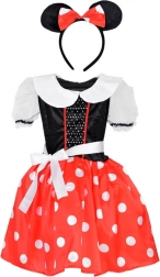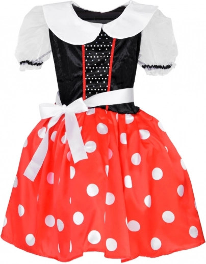 Urokliwy kostium małej myszki łączy klasyczną czerwień ze jasnymi groszkami i elegancki czarny gorset. Błyszczące detale na górnej części oraz bufiaste rękawki dodają sukience odświętnego charakteru, a podszyta spódniczka utrzymuje ładny kształt dla perfekcyjnego efektu „wow” na każdym karnawale.