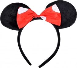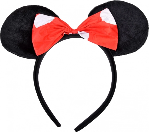 Miękka opaska z pluszowymi uszkami i czerwoną kokardą uzupełnia kostium i dobrze trzyma się na głowie.