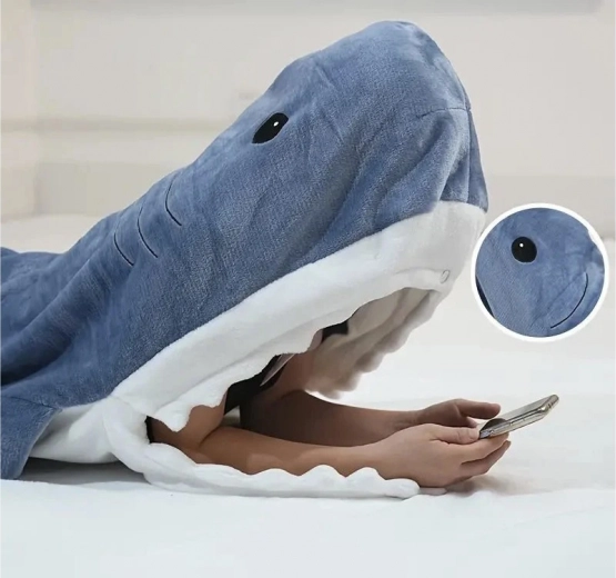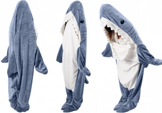 Koc-piżama kostium do spania w kształcie rekina to doskonały wybór na chłodne noce. Ten produkt jest nie tylko funkcjonalny, ale też oryginalny, co czyni go niezapomnianym i pomysłowym prezentem.