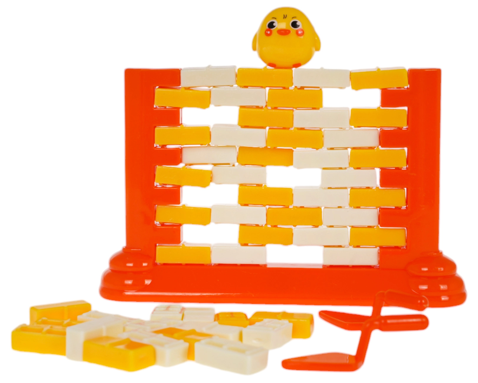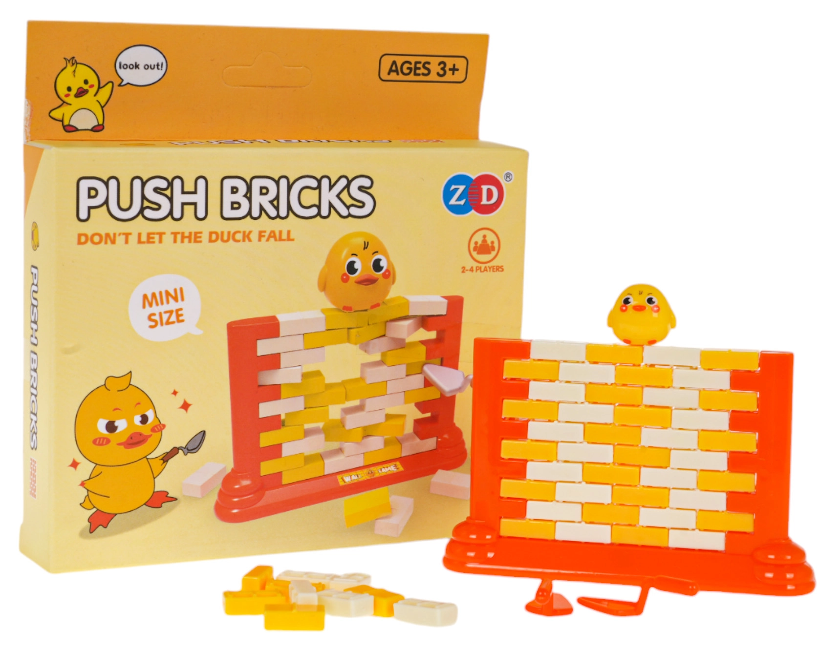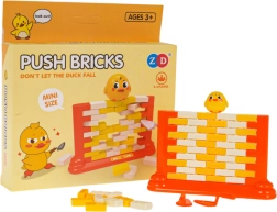 Zbuduj ścianę na podstawie, posadź na górze kaczuszkę i na zmianę wypychaj cegiełki – kto najdłużej utrzyma ścianę w pionie, wygrywa. Gra rozwija cierpliwość, motorykę małą oraz uczy dzieci strategii i przewidywania.
