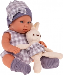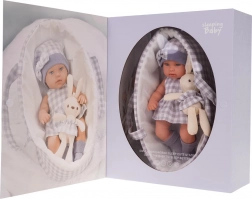 Urocza lalka–bobas w miękkim koszyku z pluszowym króliczkiem jest idealna dla dzieci od 3 lat. Ma ruchome ręce, nogi i główkę, ubranko łatwe do zdejmowania oraz lekki tekstylny koszyk z uchwytami do wygodnego przenoszenia. Zabawa lalką wspiera motorykę małą i wyobraźnię.