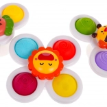 Odkryj zabawę i rozwój małej motoryki z kolorowym zestawem trzech sensorycznych spinnerów z mocną przyssawką. Zabawki płynnie się obracają, są wodoodporne, odpowiednie od 18 miesięcy i mają gumowe przyciski do naciskania, które stymulują zmysły i uspokajają. Przymocuj je do szyby, wanny lub stołu i zapewnij dzieciom mnóstwo angażującej zabawy w domu i w podróży.