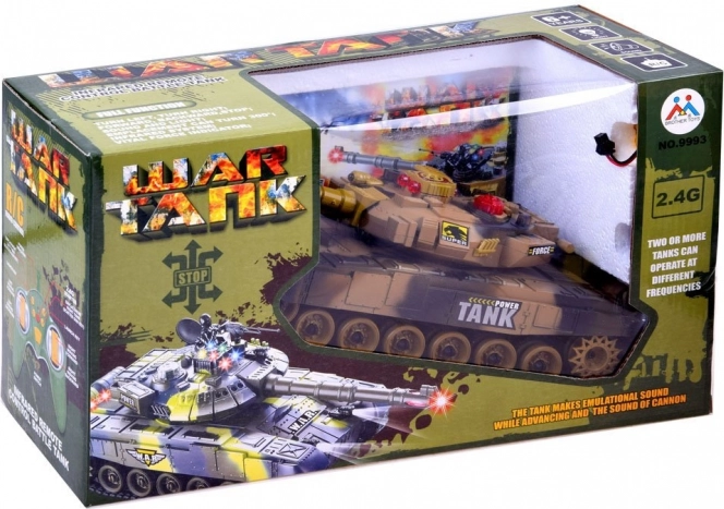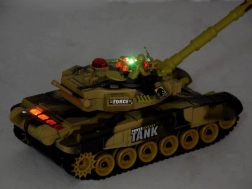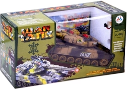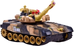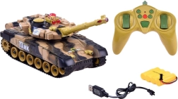 Ten zdalnie sterowany czołg oferuje wciągające doznania bitewne: po celnym trafieniu usłyszysz dźwięk trafionego celu, a na tylnej części czołgu przeciwnika gaśnie kontrolka. Po trzech trafieniach przeciwnik zostaje wyłączony na ok. 30 sekund. Obrotowa wieża umożliwia prowadzenie ognia w zakresie 360°, a kolorowe diody LED świetnie wyglądają także w ciemności.