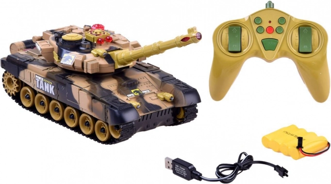 Czołg jest zasilany dołączonym akumulatorem, co obniża koszty eksploatacji. Wielofunkcyjny kontroler zapewnia płynną jazdę do przodu/tyłu, obrót w miejscu o 360°, skręcanie, obrót wieży oraz uruchomienie strzału. W zestawie znajduje się figurka czołgisty i karabin maszynowy dla jeszcze bardziej realistycznej zabawy.
