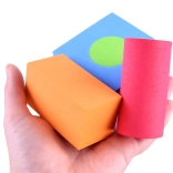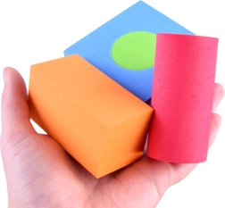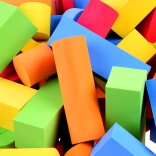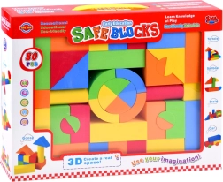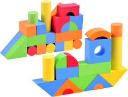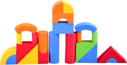 Lekki materiał i łatwa manipulacja czynią te klocki idealną zabawką dla małych dzieci.