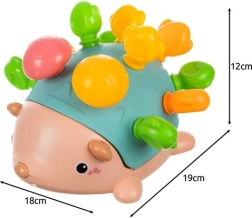 Powierzchnia jeża łączy różne faktury (gładkie, wypukłe, z otworami), które stymulują dotyk i wspierają umiejętności poznawcze. Wysokiej jakości ABS jest trwały i bezpieczny, nie zawiera szkodliwych substancji i łatwo się go czyści.