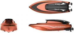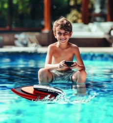 Ta pomarańczowa łódź RC idealnie nadaje się do basenów, stawów i spokojnych akwenów. Sterowanie we wszystkich kierunkach i praktyczny przycisk natychmiastowego przyspieszenia zapewniają dynamiczną jazdę i świetne wrażenia. Czujnik wody zapobiega uruchomieniu na suchym lądzie, dzięki czemu eksploatacja jest bezpieczna i oszczędna dla silnika.