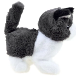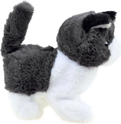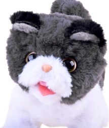 Interaktywny kociak wykonany jest z miękkiego pluszowego materiału z plastikowymi oczami i noskiem, co nadaje mu bardzo realistyczny wygląd.