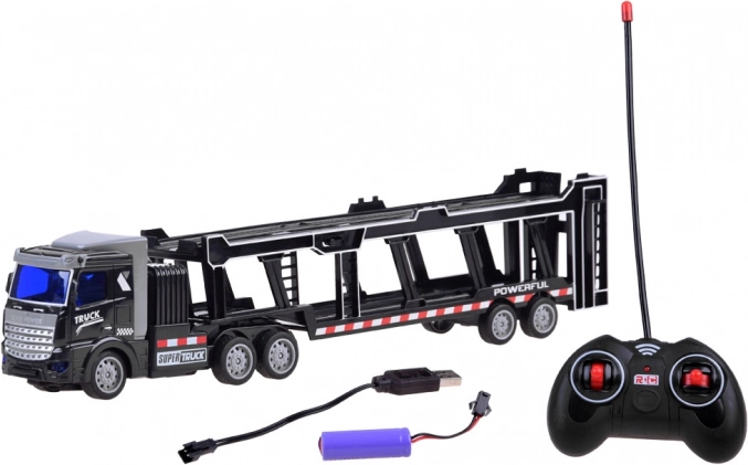 Naczepa jest w pełni odłączana i zawiera ruchome elementy, takie jak otwierane tylne drzwi oraz składana górna platforma, co umożliwia przewożenie innych zabawek. Zdalne sterowanie działające na 27 MHz zapewnia pełną kontrolę nad ruchem ciężarówki – do przodu, do tyłu, w lewo i w prawo.