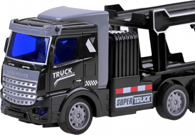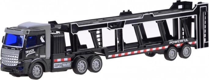 Ciężarówka i naczepa są szczegółowo wykonane z ruchomymi elementami dla realistycznej zabawy.