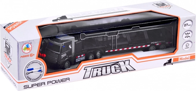 Zdalne sterowanie umożliwia pełną kontrolę nad ciężarówką dzięki częstotliwości 27 MHz.
