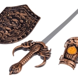 Miecz o długości 50 cm i tarcza o wymiarach 29 x 20 cm pozwalają dzieciom bezpiecznie walczyć z wyimaginowanymi przeciwnikami, bronić się i przeżywać sytuacje bojowe jak prawdziwi rycerze.