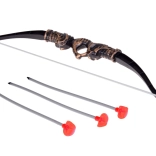 Łuk o długości 44 cm jest idealny do ćwiczenia „łucznictwa” z bezpiecznymi strzałami o długości 24 cm, zaprojektowanymi do dziecięcej zabawy. Kołczan o wymiarach 13 x 9 cm dopełnia rycerski wygląd.