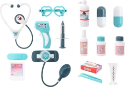 Zestaw zawiera bogaty wybór narzędzi lekarskich, które umożliwiają dzieciom odgrywanie różnych scenariuszy związanych ze służbą zdrowia. W skład zestawu wchodzi stetoskop z efektami świetlnymi i dźwiękowymi, który realistycznie odtwarza charakterystyczne dźwięki tego urządzenia, dzięki czemu zabawa jest jeszcze bardziej autentyczna i emocjonująca.