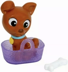 Ta figurka pieska Barbie zachwyca swoją uroczością i kolorowym wykonaniem. Piesek siedzący w małym fioletowym koszyku z białą kostką to doskonały dodatek dla dzieci powyżej 3 lat.