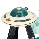Futurystyczna wieża UFO jest centrum toru, po włączeniu świeci i wydaje dźwięki, co dodaje atmosfery kosmicznej scenie. Ten zestaw nie tylko bawi, ale także rozwija umiejętności motoryczne, koordynację i wyobraźnię dzieci, wprowadzając je w fascynujący świat pełen przygód!