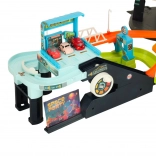 Zestaw zawiera kierownicę, która pozwala dzieciom poczuć się jak za kierownicą prawdziwego samochodu, z trzema przyciskami do uruchamiania efektów dźwiękowych, które uatrakcyjniają grę. Kierownica aktywuje także jedną z dwóch wind, dzięki którym auta dostają się na szczyt toru.