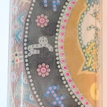 Zawartość opakowania: Płótno z nadrukowanym wzorem, aplikacyjne pióro, miseczka, wosk, zestaw kolorowych kamyczków.