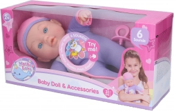Urocze niemowlę o wysokości 31 cm ucieszy każdego małego opiekuna. Ma miękkie ciałko, reaguje na naciśnięcie brzuszka i oferuje 6 efektów dźwiękowych. W zestawie znajdziesz butelkę i smoczek, a zabawa może rozpocząć się od razu dzięki bateriom w zestawie.