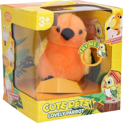 Zabawny interaktywny ptaszek, który siada na ręce i powtarza twoje słowa. Oferuje efekty dźwiękowe, proste sterowanie za pomocą przycisków na skrzydłach i jest idealny dla dzieci od 3 lat. W zestawie znajdują się baterie 3× AG13.