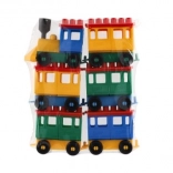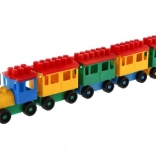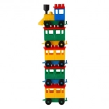 Stavebnice oferuje jasno zabarwioną lokomotywę i pięć wagoników. Te kolory przyciągają uwagę i wspierają dziecięcą kreatywność.