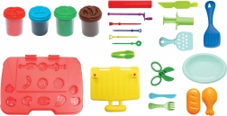 Zabawny kreatywny zestaw dla małych kucharzy i artystów. W komplecie znajduje się grill z foremkami, narzędzia do modelowania oraz cztery kubeczki masy plastycznej. Dzieci będą się świetnie bawić, modelując potrawy, mieszając kolory i odgrywając fantazyjną zabawę w grillowanie.