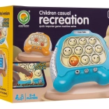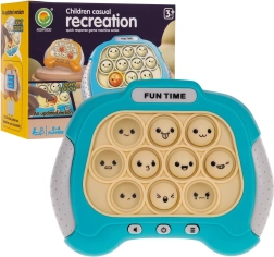 Sprytna zręcznościowa gra w kształcie gamepada zachwyci małych graczy i rodziców. Dzieci śledzą sekwencje świetlne i w podanej kolejności naciskają bąbelkowe przyciski. Do dyspozycji jest 5 trybów gry, dynamiczne efekty świetlne oraz oprawa dźwiękowa. Gra rozwija umiejętności poznawcze, trenuje spostrzegawczość i koordynację oko–ręka.