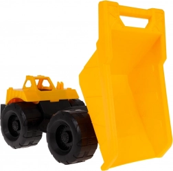 Pojazd budowlany wyposażony jest w duże obrotowe koła i ruchomą skrzynię ładunkową dla prawdziwie interaktywnej zabawy.