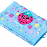 Portfel jest dostępny w 3 różnych wariantach: niebieski z truskawką, różowy z pączkiem oraz czerwony z króliczkiem. Kompaktowe wymiary są idealne do szkolnej torby, plecaczka i kieszeni.