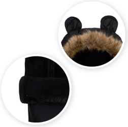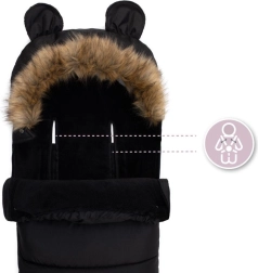 Zimowy śpiworek MoMi jest łatwy w użyciu – posiada zamek błyskawiczny ułatwiający wygodne ułożenie dziecka w śpiworku. Ma uniwersalne kolory, które będą pasować do innych dziecięcych akcesoriów. Jest podszyty sztucznym futerkiem i ma urocze, ozdobne uszka, które dodają mu charakteru. Podszycie ze sztucznego futerka jest odpinane.