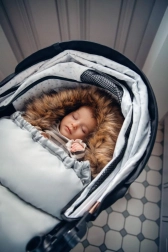 MoMi zimowy śpiworek ma również zapięcie na zamek błyskawiczny, co umożliwia łatwy dostęp oraz uniwersalny design odpowiedni do fotelików samochodowych, wózków i na sanie.