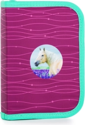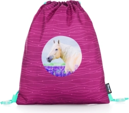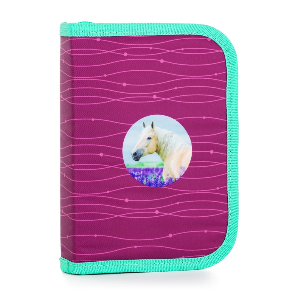 Różowo‑purpurowy z motywem konia, wymienne przypinki