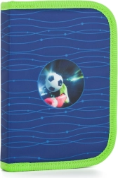 - Jednopoziomowy piórnik bez wyposażenia z motywem piłkarskim