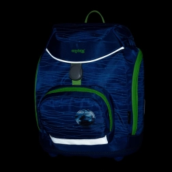 Sztywne dno z plastikowymi nóżkami utrzymuje plecak w pozycji stojącej, a elementy odblaskowe zwiększają widoczność dziecka o zmierzchu.