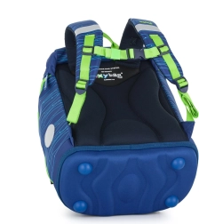 Ergonomia na pierwszym miejscu: anatomicznie ukształtowany panel pleców (długość 33 cm), wyściełane szelki oraz regulowany pas piersiowy wspierają prawidłową postawę ciała. Sztywne dno z plastikowymi nóżkami zapobiega przewróceniu, a elementy odblaskowe zwiększają bezpieczeństwo w drodze do i ze szkoły. Dzięki wymiennym przypinkom na rzep dzieci łatwo spersonalizują wygląd plecaka.