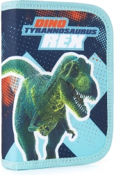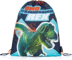 W zestawie znajduje się worek na strój ze ściąganymi sznurkami oraz jednopoziomowy piórnik z dwiema klapkami i gumkami. Dzieci docenią spójny motyw T‑Rexa i praktyczny układ.
