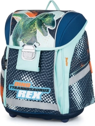 Zestaw szkolny Premium Light dinozaur to idealny wybór dla uczniów klas 1–3. Lekka teczka o masie zaledwie 900 g odciąża plecy, a dzięki ergonomicznemu, oddychającemu panelowi oraz szerokim, miękko wyściełanym szelkom zapewnia wygodne i stabilne noszenie. Pasy ściągające i pas piersiowy pomagają w prawidłowym rozłożeniu obciążenia, a elementy odblaskowe zwiększają widoczność dziecka.