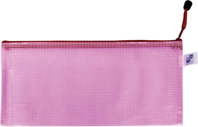 Praktyczna różowa koperta z zamknięciem na zamek jest idealna do bezpiecznego przechowywania dokumentów, pieniędzy i papierów. Wykonana z plastiku i wzmocniona tkaniną siatkowaną dla zwiększonej trwałości.