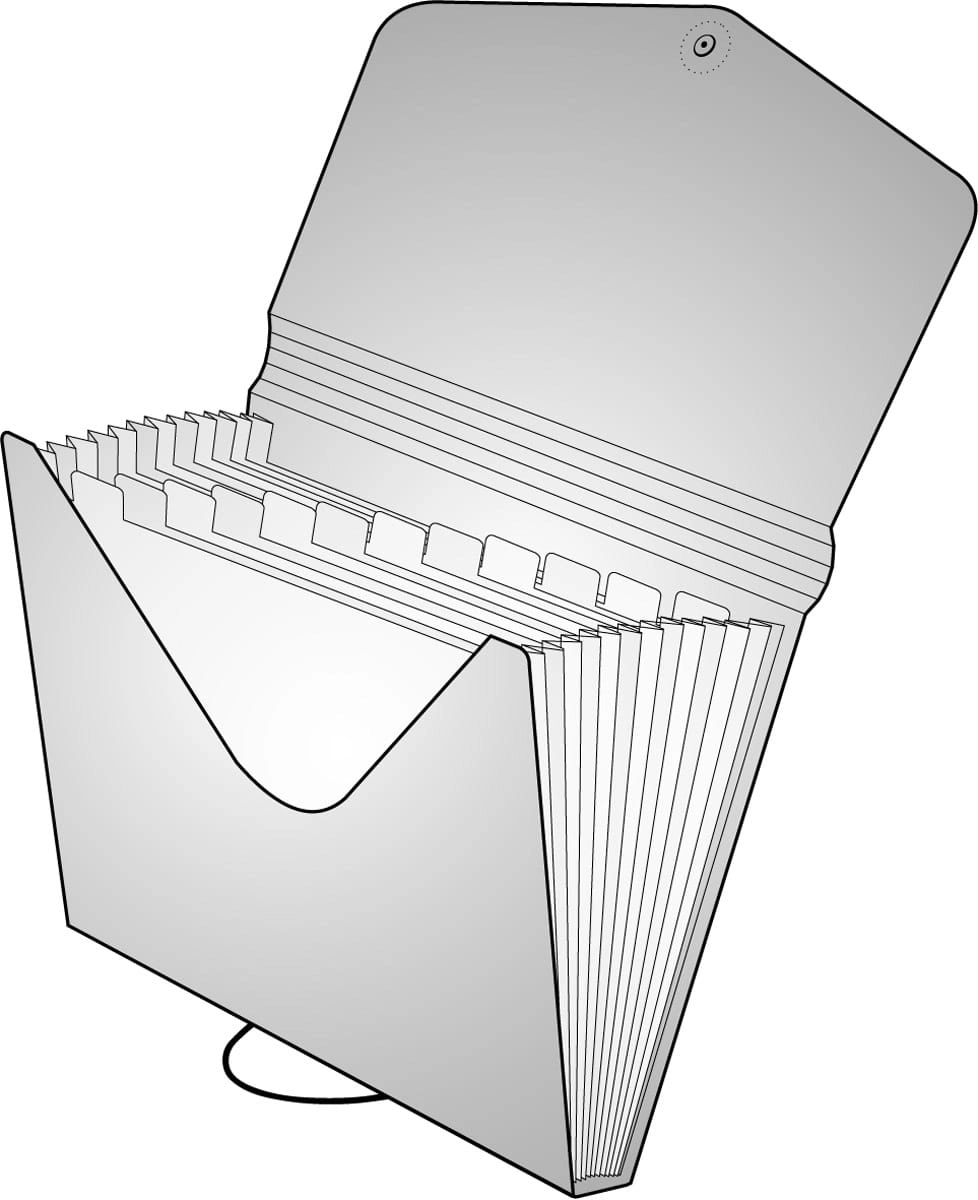 Praktyczny biurowy organizer na dokumenty w formacie A4 z 13 wewnętrznymi przegródkami i etykietami dla łatwej orientacji. Dzięki rozszerzanej górnej części pomieści więcej dokumentów, a zapięcie na gumkę i guzik jest bezpieczne i szybkie. Wykonany z ekstra mocnego materiału PP dla codziennej wytrzymałości.